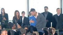 Will and Jaden Smith hugged on stage as they joined Boris Johnson to celebrate the achievements of the Mayor's Leadership Clubs. Report by Kerrsa. Like us on Facebook at http://www.facebook.com/theshowbiz411 and follow us on Twitter at http://twitter.com/theshowbiz411