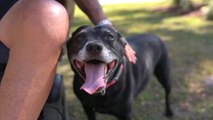 EDIT CONTAINS 4:3 MATERIAL<br /> <br />It was a celebrity's welcome as Kabang the wonder dog returned to her home in the Philippines on Saturday to a slew of reporters and cameras.<br /> <br />The two year old shepherd mix had been in the U.S. for treatment after her snout was ripped off in a traffic accident.<br /> <br />Here's what happened.<br /> <br />The daughter of Kebang's owner, a nine year old girl, along with her three year old cousin, were crossing a busy street in southern Philippines. They were about to get hit by a speeding motorcycle when Kebang jumped in front of it. She saved the girls lives, but nearly sacrificed her own. Her upper snout and jaw were completely torn off.<br /> <br />But the story of her heroism gained international attention. Thousands of supporters from around the world sent in money for her to receive reconstructive surgery at the University of California, Davis in the U.S.<br /> <br />During a five hour procedure, doctors closed her facial wound and reconstructed her nasal openings.