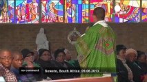 School children sang for ailing Nelson Mandela outside his home as the former South African president spent a fourth day in hospital with a recurring lung infection.<br />No Comment | euronews: watch the international news without commentary | http://www.euronews.net/nocomment/