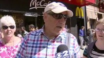 Two window washers have just been rescued after the scaffolding gave way on the Hearst building in Manhattan. The men were dangling forty stories high for almost an hour. Firefighters pulled out the glass pane and pulled the men through to safety. <br /><br />Host @DavidBegnaud delivers breaking news and today's trending buzz in 45 seconds.