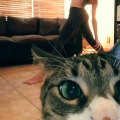Trop mignon ce chat réagit quand son maître fait semblant de mourir !