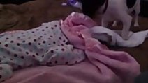 A dog tucking in the baby!