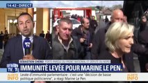 Jean-Marie Le Pen, député européen comme sa fille Marine, a jugé "scandaleuse", mardi, la levée de l'immunité parlementaire de sa fille par le Parlement européen. Lui, voit dans cette décision une "expression politique". "On lève l'immunité parlementaire de ceux qui s'expriment politiquement, mais jamais celle des voyoux qui tapent dans la caisse", a-t-il fustigé.