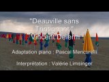 Chanson extraite du premier album de Vincent Delerm sorti en 2002 <br />Ce dernier est très cinéphile: le cinéma est bien présent dans ses chansons avec de nombreuses citations (il a été un temps lui-même comédien et a participé à une troupe de théatre) <br />Ici c’est un hommage rendu au film « Un homme et une femme » de Claude Lelouch : on entend ainsi à la fin de la chanson la voix enregistrée de Jean-Louis Trintignant extrait du cèlèbre monologue dans la voiture <br /><br />A Deauville un dimanche <br />Sous la pluie sur les planches <br />Elle s'avance à côté <br />D'un homme plus âgé <br />Il ne dit presque rien <br />A Deauville ce matin <br />Il promène sur la plage <br />Son deuxième mariage <br />Les studios vue sur mer <br />Sont fermés tout l'hiver <br />Puisque les retraités <br />N'ont pas pris de congé <br />C'est le deuxième café <br />Ses cheveux sont trempés <br />Balançoire trampoline <br />Le club Mickey dégouline <br /><br />Elle repense à ce film <br />Qui se passe à Deauville <br />C'est un peu décevant <br />Deauville sans Trintignant <br /><br />Ils iront tout à l'heure <br />Déjeuner à Honfleur <br />Reprendre la Rover <br />Et s'ennuyer ailleurs <br />Menu à deux-cent vingt <br />Citron vert sur les mains <br />Il fera rapporter <br />Un château bouchonné <br />Juste après le repas <br />Ils feront quelques pas <br />Elle voudra essayer <br />Ce manteau bleu soldé <br />Marée basse sur le port <br />Il attendra dehors <br />Il faudra envisager <br />Un retour bouchonné <br /><br />Elle repense à ce film <br />Qui se passe à Deauville <br />C'est un peu décevant <br />Deauville sans Trintignant <br /><br />Elle a raté son dimanche <br />A Deauville sur les planches <br />Il a raté sa vie <br />A Deauville sous la pluie