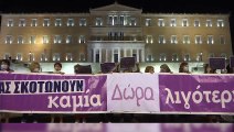 La marea de la huelga general del martes ha continuado por la noche frente al Parlamento griego. Ha sido el cuarto paro total del año en contra de unas nuevas medidas con las que el Gobierno Samarás busca satisfacer las exigencias de la troika en cuanto al despido de funcionarios.<br /><br />...<br />http://es.euronews.net/