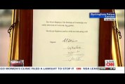 The official notification of the royal birth has been placed on an easel at Buckingham Palace. Report by Kerrsa. Like us on Facebook at http://www.facebook.com/itn and follow us on Twitter at http://twitter.com/itn