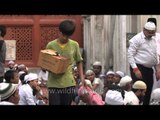 Muslim devotees gathered for Iftar at Nizamuddin Dargah, Delhi.<br /><br />Iftar is one of the religious observances of Ramadan and is often done as a community, with people gathering to break their fast together. Iftar is taken right after Maghrib time, which is around sunset. Traditionally but not mandatory, three dates are eaten to break the fast in emulation of the Prophet Muhammad, who broke his fast in this manner. Many Muslims believe that feeding someone iftar as a form of charity is very rewarding and that such was practised by the Prophet Muhammad.<br /><br />Nizamuddin Dargah is the dargah (mausoleum) of one of the world's most famous Sufi saints, Nizamuddin Auliya (1238 - 1325 CE). Situated in the Nizamuddin West area of Delhi, the dargah is visited by thousands of Muslims every week, and sees a fair share of Hindus, Christians and people from other religions. The tombs of poet Amir Khusro and Mughal princess Jehan Ara Begum are also located within the Nizamuddin Dargah complex, and Inayat Khan's tomb is just around the corner.<br />Source: Wikipedia<br /><br />This footage is part of the professionally-shot broadcast stock footage archive of Wilderness Films India Ltd., the largest collection of HD imagery from South Asia. The Wilderness Films India collection comprises of tens of thousands of hours of high quality broadcast imagery, mostly shot on HDCAM 1080i High Definition, HDV and XDCAM. Write to us for licensing this footage on a broadcast format, for use in your production! We are happy to be commissioned to film for you or else provide you with broadcast crewing and production solutions across South Asia. We pride ourselves in bringing the best of India and South Asia to the world... Reach us at wfi @ vsnl.com and admin@wildfilmsindia.com.