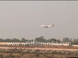 Plane landing at Delhi Airport
