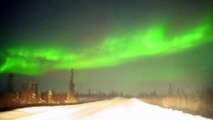 Driving Under a Bright Aurora in Coldfoot, Alaska