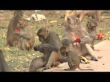 Rhesus macaques eating Pomegranate