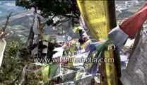 Holy stupa surrounded with prayer flags, at Mullingar, Landour Bazaar
