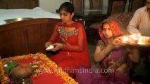 Family carrying out Diwali puja at Fatehpur Beri, Delhi