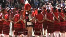 Sangtam Naga cultural troop welcoming the chief guest at Nagaland Hornbill festival
