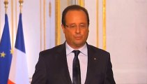 La déclaration de François Hollande, mardi 27 août, devant les ambassadeurs français réunis à l'Elysée. Images : <A HREF="http://www.itele.fr/" TARGET="_blank"><u>iTélé</u></A> | <A HREF="http://tempsreel.nouvelobs.com/video" TARGET="_blank"><u>Retrouvez sur notre site toutes les vidéos du Nouvel Observateur</u></A>