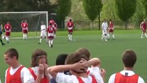 This football team scored a perfect and awesome freekick, some kind of magic trick with 3 fake shooters... And goal!