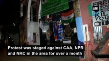 White cloths hung outside the foothpath road in Delhi
