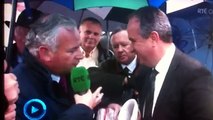 Pendant le Galway Races (couse de chevaux) en Irlande, un homme qui avait le visage mouillé à cause de la pluie s'est essuyé avec un billet de 50 EUR qu'il a sorti de sa poche. La scène s'est passée pendant une interview diffusée à la télé. L'homme apparait en arrière plan. Il pourrait s'agir d'un mouchoir avec un billet imprimé dessus, ou le mec savait qu'il passait à la télé, alors il a voulu troller.