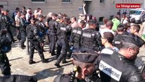 Les forces de l'ordre ont délogé les derniers manifestants à coups de gaz lacrymogène, dans les rues de Quimper, ce samedi, après la manifestation pour l'emploi. Les images de Bruno Salaün. <br />Plus d'infos sur www.letelegramme.fr
