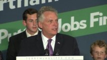 ROUGH CUT (NO REPORTER NARRATION)<br/> <br />Former Democratic National Committee Chairman Terry McAuliffe was elected governor of Virginia, largely with the support of the heavily populated Washington suburbs that were hard hit by last month's partial shutdown of the federal government.<br/> <br />McAuliffe's campaign had held up rival Ken Cuccinelli, the state's attorney general, as a symbol of the Tea Party wing of the Republican Party, seen by many voters as responsible for the shutdown, which economists said took a $24 billion bite out of the U.S. economy.<br/> <br />Cuccinelli's loss was a setback for the Tea Party movement, which swept a wave of right-wing lawmakers into Congress in 2010 and has been seeking to extend its legislative influence in next year's congressional elections.<br/> <br />The close race reflected the political split in Virginia, which President Barack Obama won in both his presidential races, but that elected a Republican governor four years ago.<br/> <br />Cuccinelli, a social con