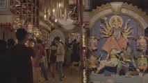 Durga Puja carnival scenario at Kolkata, the capital of the state of West Bengal.<br /><br />Durga Puja, also referred to as Durgotsava or Sharadotsav is an annual Hindu festival in South Asia that celebrates worship of the Hindu goddess Durga. It refers to all the six days observed as Mahalaya, Shashthi, Maha Saptami, Maha Ashtami, Maha Navami and Vijayadashami. The dates of Durga Puja celebrations are set according to the traditional Hindu calendar and the fortnight corresponding to the festival is called Devi Paksha, 'Fortnight of the Goddess'). Devi Paksha is preceded by Mahalaya, the last day of the previous fortnight Pitri Paksha, 'Fortnight of the Forefathers'), and is ended on Kojagori Lokkhi Puja ('Worship of Goddess Lakshmi on Kojagori Full Moon Night').<br />Durga Puja festival marks the victory of Goddess Durga over the evil buffalo demon Mahishasura. Thus, Durga Puja festival epitomises the victory of Good over Evil.<br /><br />In Kolkata alone more than two thousand pandals are set up, all clamouring for the admiration and praise of the populace. The city is adorned with lights. People from all over the country visit the city at this time, and every night is one mad carnival where thousands of people go 'pandal-hopping' with their friends and family. Traffic comes to a standstill, and indeed, most people abandon their vehicles to travel by foot after a point. A special task force is deployed to control law and order. Durga Puja in Kolkata is often referred to as the Rio Carnival of the Eastern Hemisphere.<br /><br />Kolkata is the capital of the Indian state of West Bengal. Located on the east bank of the Hooghly river, it is the principal commercial, cultural, and educational centre of East India, while the Port of Kolkata is India's oldest operating port as well as its sole major riverine port. As of 2011, the city had 4.5 million residents; the urban agglomeration, which comprises the city and its suburbs, was home to approximately 14.1 million, making it the third-most populous metropolitan area in India. As of 2008, its economic output as measured by gross domestic product ranked third among South Asian cities, behind Mumbai and Delhi.<br /><br />Source: Wikipedia<br /><br />This footage is part of the professionally-shot broadcast stock footage archive of Wilderness Films India Ltd., the largest collection of HD imagery from South Asia. The Wilderness Films India collection comprises of tens of thousands of hours of high quality broadcast imagery, mostly shot on HDCAM / SR 1080i High Definition, Alexa, SR, HDV and XDCAM. Write to us for licensing this footage on a broadcast format, for use in your production! We are happy to be commissioned to film for you or else provide you with broadcast crewing and production solutions across South Asia. We pride ourselves in bringing the best of India and South Asia to the world... Reach us at rupindang @ gmail . com and admin@wildfilmsindia.com.