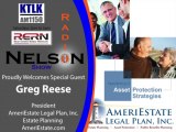 http://nelsonradio.com/AmeriEstate.html Nelson Radio had Greg Reese the Owner AmeriEstate. Greg talked about how everyone need an estate plan and how easy it is to achieve one. This was a great interview with a lot of info. Check It Out