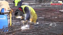 Construction et transports des voussoirs dans le cadre du chantier LGV Tours-Bordeaux au départ du Viennopole de la Pazioterie à Coulombiers.