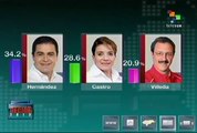 El Tribunal Supremo Electoral de Honduras presentó una nueva actualización sobre los resultados electorales que muestran al candidato oficialista, Juan Orlando Hernández, a la cabeza con más del 34% de los votos. teleSUR http://media.tlsur.net//web/telesur/#!es/video/tse-de-honduras-actualiza-resultados-oficialismo-en-primer-lugar