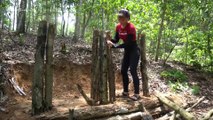 Build survival shelter in the wood, Bushcraft hut by dry tree ~~ Free Bushcraft