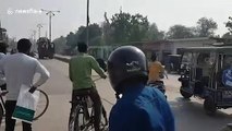 Clash between two bulls leaves motorcyclists wounded in Northern India