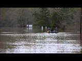<p>Police were turning back cars coming through Cobham village in Surrey, UK on Thursday, January 2. Just after this cyclist and cars came through towards the village, police closed the road completely. This is the second time in nine days the River Mole has burst its banks after prolonged spells of heavy rain in recent days. More rain is expected, <a class="link" rel="nofollow" target="_blank" href="http://www.bbc.co.uk/news/uk-england-surrey-25577263" target="_blank">according to news reports</a>. Credit: Jan Littlemore</p>