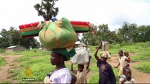 Close to a million people have now been internally displaced in the Central African Republic. <br /><br /> The number of homeless has doubled since December according to the UN and represents a fifth of the population.<br /><br /> Most left the capital of Bangui to escape the fighting between Muslim fighters and Christian militia with many fleeing to neighbouring countries.<br /><br /> The international airport in Bangui is now a makeshift camp for 100,000 people. Skirmishes in surrounding neighbourhoods have prevented humanitarian groups from accessing the site to help with food and water. <br /><br /> Scores of abandoned homes that once belonged to local Christians litter the countryside. They left after grenade attacks, allegedly by Muslims. <br /><br /> Violence initially flared in March when ex-rebel Muslim leader Michel Djotodia staged a coup and forced the Christian president Francois Bozize into hiding. <br /><br /> Since then, the fighting has escalated, despite the presence of over 5,000 peacekeeping troops from the African Union and France on the ground.