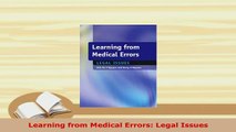 PDF Learning from Medical Errors Legal Issues Free Books