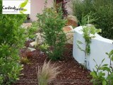 Aménagement complet autour d'une maison en bois.