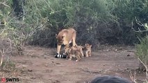 Lioness snatches photographer's camera