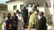 Ukrainian opposition leaders call for peaceful protests as they return from talks with President Viktor Yanukovych claiming several minor concessions but no breakthrough. Duration: 01:13