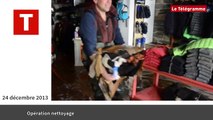 Entraide ce samedi 1er février à Morlaix parmi les commerçants inondés. Le témoignage de Philippe Rivollier, un commerçant "qui donne un coup de main". Images Sophie Prévost.