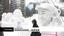 Tourists walk on the park to watch the large snow sculptures during the 65th annual Sapporo Snow Festival in Sapporo on February 5, 2014. Duration: 00:39