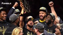 Glass falls onto court during Heat - Warriors game
