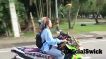 Pássaro segue dona que viaja de moto na Tailândia