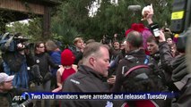 This is Pussy Riot's new video… the first one since two members were freed from jail.<br/> <br />In true Pussy Riot fashion, brightly colored ski masks hide the women's faces as they protest while rocking out. This time, in Sochi.<br/> <br />They're criticizing Russian President Vladimir Putin for hosting the Olympics as a - quote - public relations stunt. Saying it's his attempt to paper over the country's human rights violations.<br/> <br />The rockers spoke during a news conference Thursday:<br/> <br />(SOUNDBITE) (Russian) PUSSY RIOT MEMBER, NADEZHDA TOLOKONNIKOVA, SAYING:<br/> <br />"The Olympics have turned a police state into a complete police state; an authoritarian regime into a totalitarian regime with preventative arrests. My relationship to the Olympics is that the Olympics create a space for the complete destruction of human rights in Russia. Here we are banned from speaking out…"<br/> <br />The girls are beaten by Cossacks in the video - patrolmen who are reinforcing security around the Games.<br/> <br />T