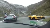 Une Audi R8, une McLaren P1 et une Porsche 918 Sypder s'éclatent sur une route de montagne