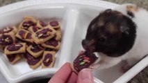 WATCH IN HD!<br />SAFE FOR ALL SPECIES OF HAMSTER AND DOGS! I DO NOT KNOW IF IT IS SAFE FOR OTHER ANIMALS SO DO NOT ASK.<br />So Lots of People Wanted more Hamster Treat Videos so here they are! These are just great treats that you can make with any left over pumpkin! Canned pumpkin can be used but make sure there's no sugars/spices in it! <br />You will need:<br />1 cup whole wheat flour (WHITE FLOUR CAN BE USED ALSO)<br />1/2 cup of Puree Pumpkin or canned Pumpkin<br />1 teaspoon of Peanut Butter (THIS IS OPTIONAL! IF YOU ARE ALLERGIC YOU DON"T NEED TO ADD THIS!) <br />Mix all ingredients together<br />Roll dough out and cut into shapes (I used small cookie cutters from Michael's perfect for hamsters!) <br />Preheat oven to 300f <br />Put on a cookie sheet and bake for 20-30 minutes! Make sure to keep an eye on them so they don't burn! <br />Let cool and feed to your hamsters or dogs!<br />\/\/\/\/\/\/\/\/\/\/\/\/\/\<br />SOCIAL MEDIA:<br />2ND CHANNEL:: http://www.youtube.com/user/lifewithTori19<br />TWITTER:: https://twitter.com/OfficialCC26<br />WEBSITE:: http://chocolatecolors26.wix.com/thehamsteryguide#!home/mainPage<br />\/\/\/\/\/\/\/\/\/\/\/\/\/\<br />Royalty Free music by: http://www.audiomicro.com/royalty-free-music<br />\/\/\/\/\/\/\/\/\/\/\/\/\/\<br />I love Getting Comments and Read Every one of them!<br />I try very hard to answer questions when I can, but there is an excellent chance your question has been answered in the description box or in the comments, so please take a look.<br /><br />Giving my channel a thumbs up (or down) helps my channel be seen by more people, so please rate while you are here. ( So even thanks to the haters!)