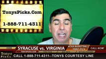 The Syracuse Orange will travel in ACC conference action as they face the Virginia Cavaliers in an NCAA college basketball game on Saturday. <br /> <br />Tip off time from Virginia is scheduled for 4PM Eastern Time with national television coverage provided by ESPN TV. <br /> <br />The point spread odds from this college basketball game have the home side Virginia Cavaliers favored by –3 1/2 points.