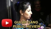 Madhuri Dixit and Juhi Chawla starrer 'Gulaab Gang' hit theatres this Friday. Here is the public review of Gulaab Gang.<br />Subscribe http://bit.ly/subscribe-ians-india for latest happenings in Bollywood entertainment, Hindi TV Cinema and your favourite Sports celebrities, their Exclusive news updates.<br /><br /><br />IANS India Videos - Dedicated to bringing you the latest and best in sports and entertainment world. From traditional sports like cricket to best Bollywood entertainment news, IANS India is a must watch on YouTube.<br /><br />Important Links from IANS India - A must watch on YouTube<br /><br />http://www.youtube.com/IANSIndia<br />http://bit.ly/IANS-India-Facebook<br />http://bit.ly/IANS-India-Twitter<br />http://bit.ly/IANS-India-Google-Plus<br />http://bit.ly/IANS-India-Linkedin<br />http://bit.ly/IANS-India-Android-app<br />http://bit.ly/IANS-India-iPhone-app<br />http://www.iansvideo.com/