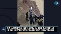 Una madre pone en peligro a su bebé al intentar cruzar un torrente de agua en Molina de Segura