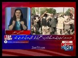Jasmeen Manzoor plays a video of Rangers person with a pistol in his hand during protest