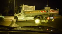 Il drifte avec un camion de chantier