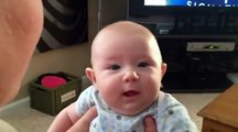 Very cute baby is either scared of cat sounds or thinks her mother is absolutely bonkers.
