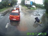 This rider tried to show off by riding through a puddle, but ended up with a full body coating of mud instead.