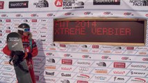 Run of Bib #2 Elodie Mouthon FRA on The Bec Res Rosses at the Swatch Freeride World Tour Xtreme Verbier 2014 by The North Face in Verbier, Switzerland.